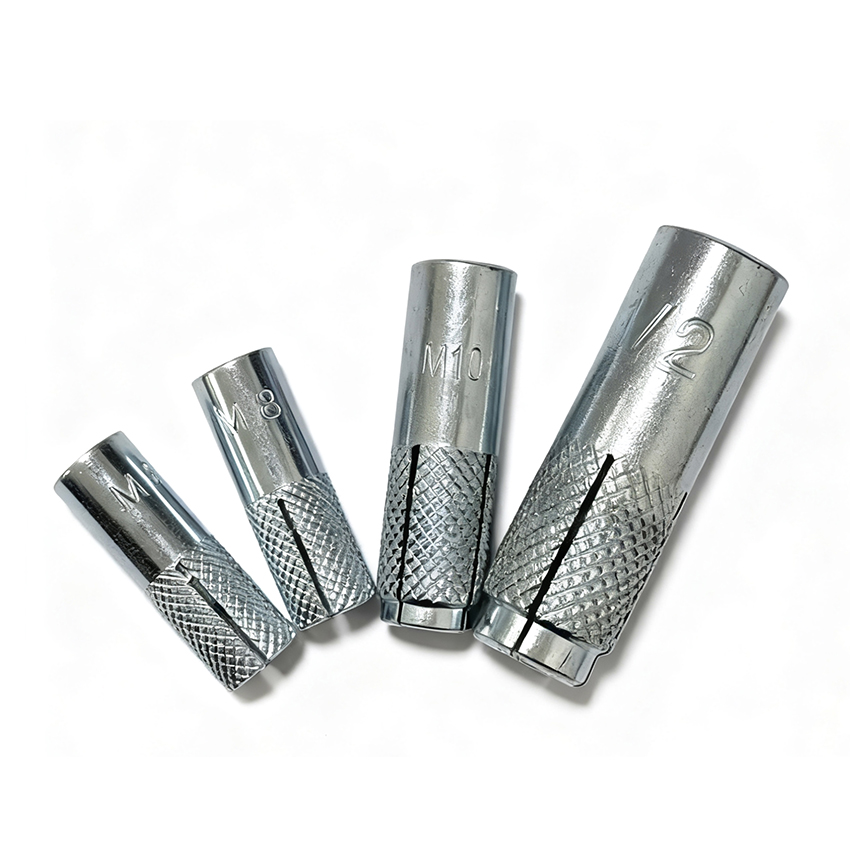 主体为管状结构,分为两部分:① 螺纹管段(带精密内螺纹,用于连接后续紧固螺栓,传递负载);② 膨胀管段(可径向扩张,外壁通常设计有摩擦条纹、加强凸部,提升与基材孔壁的咬合摩擦力,管身开有轴向膨胀槽,便于受挤压后均匀扩张)。部分优化款在螺纹管与膨胀管衔接处设有弧形定位凸边,确保内迫件安装时同轴度,避免偏移影响膨胀效果。